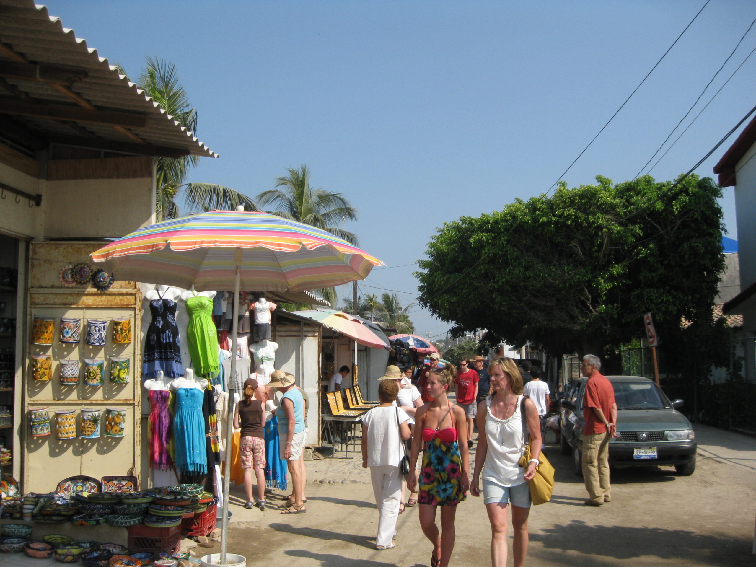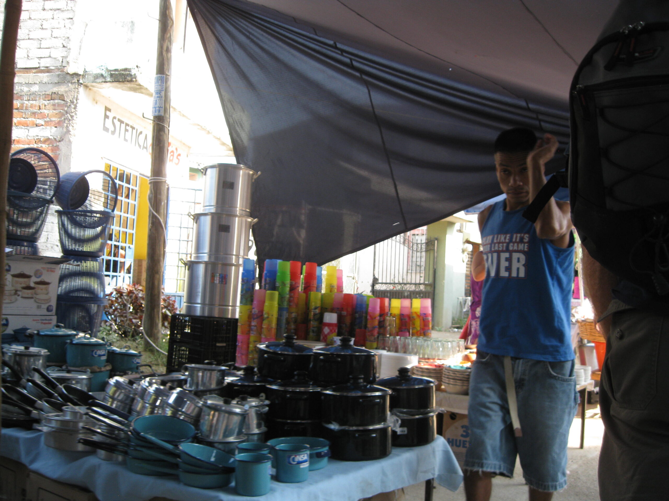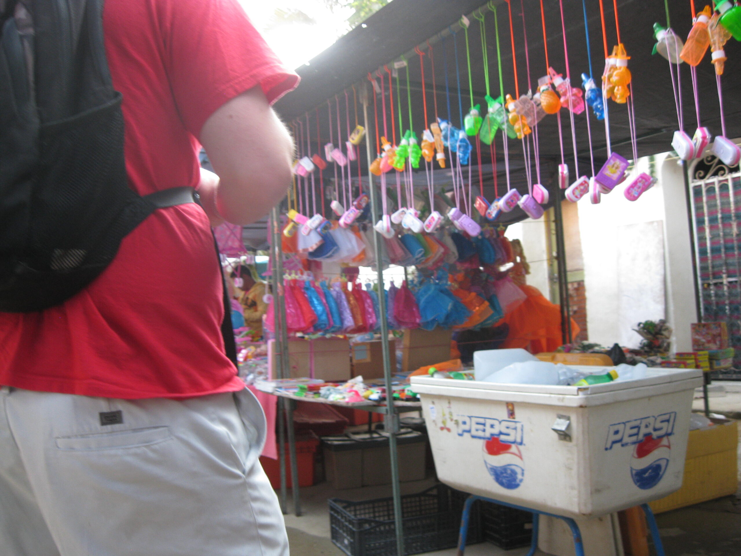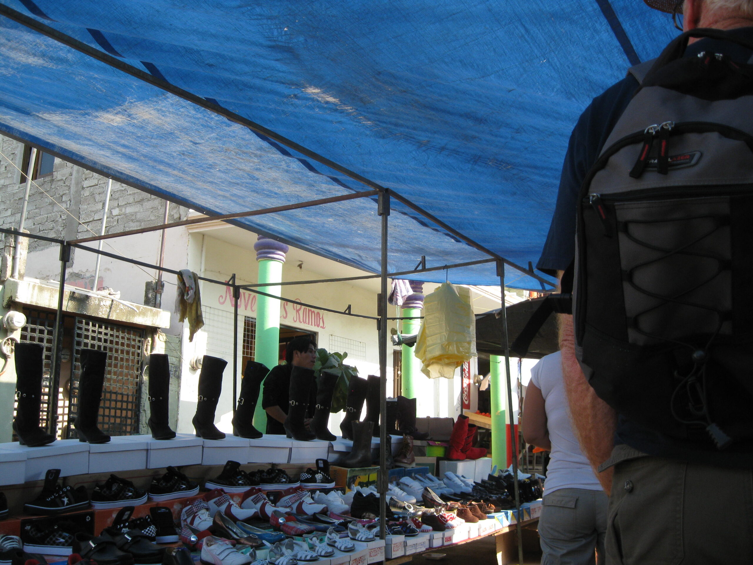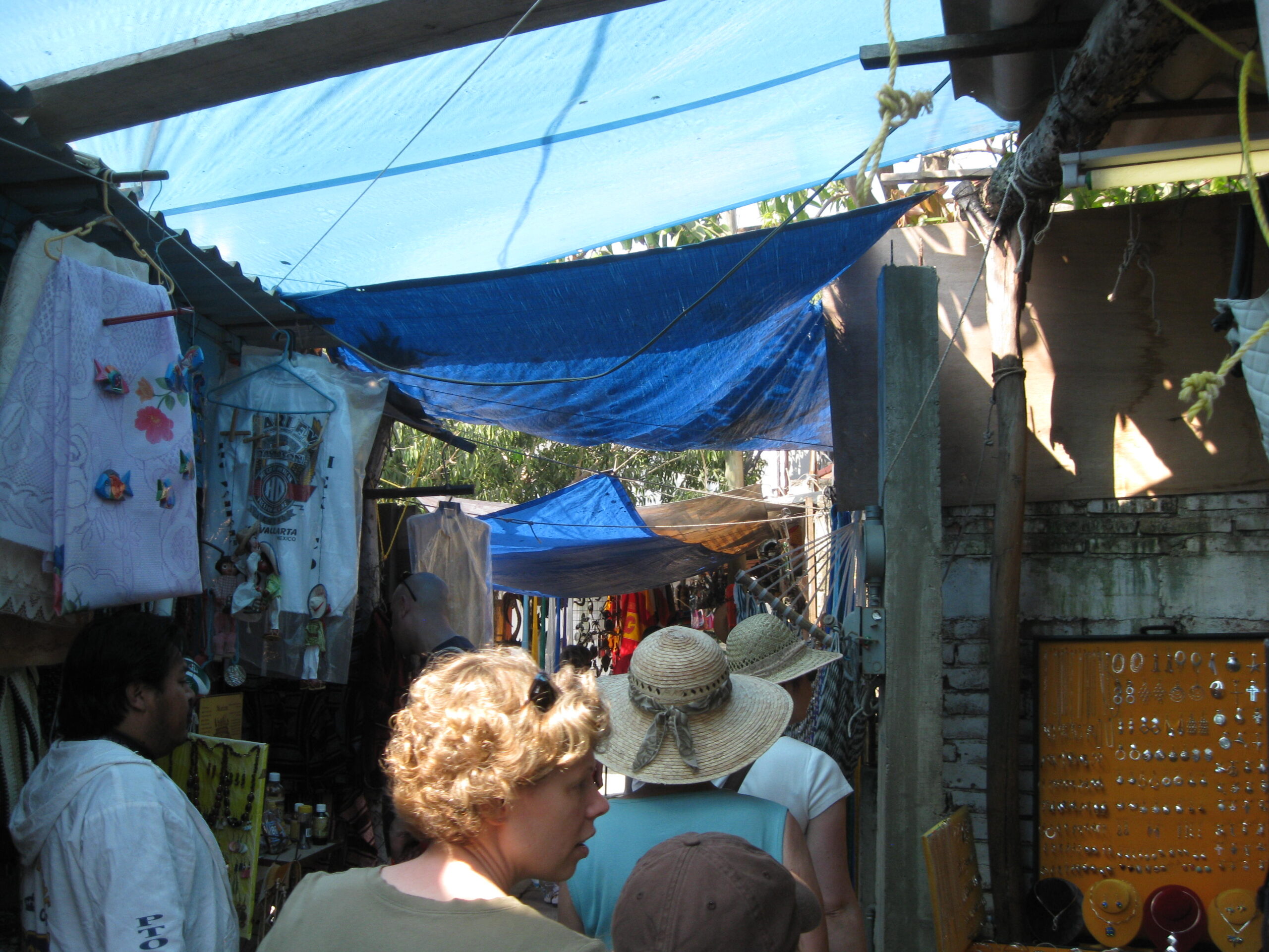 Yes, today was the day to go to the market, held each Sunday morning, on the other side of the highway. We got up, well, not early, but at least we got up (you know by now that I’m the sloth of the group), then made our way to the market. It was basically about six blocks of streets with vendors on both sides. The crowds apparently were small for a market Sunday, but that’s just as well for out-of-towner gringos like us!