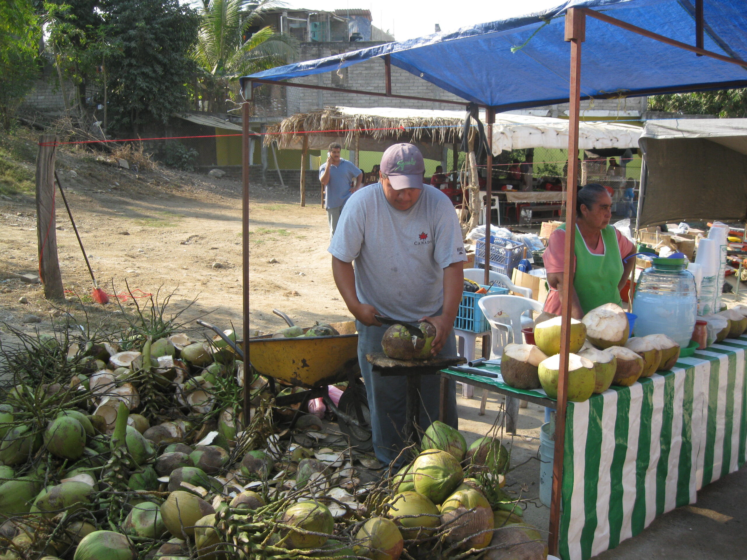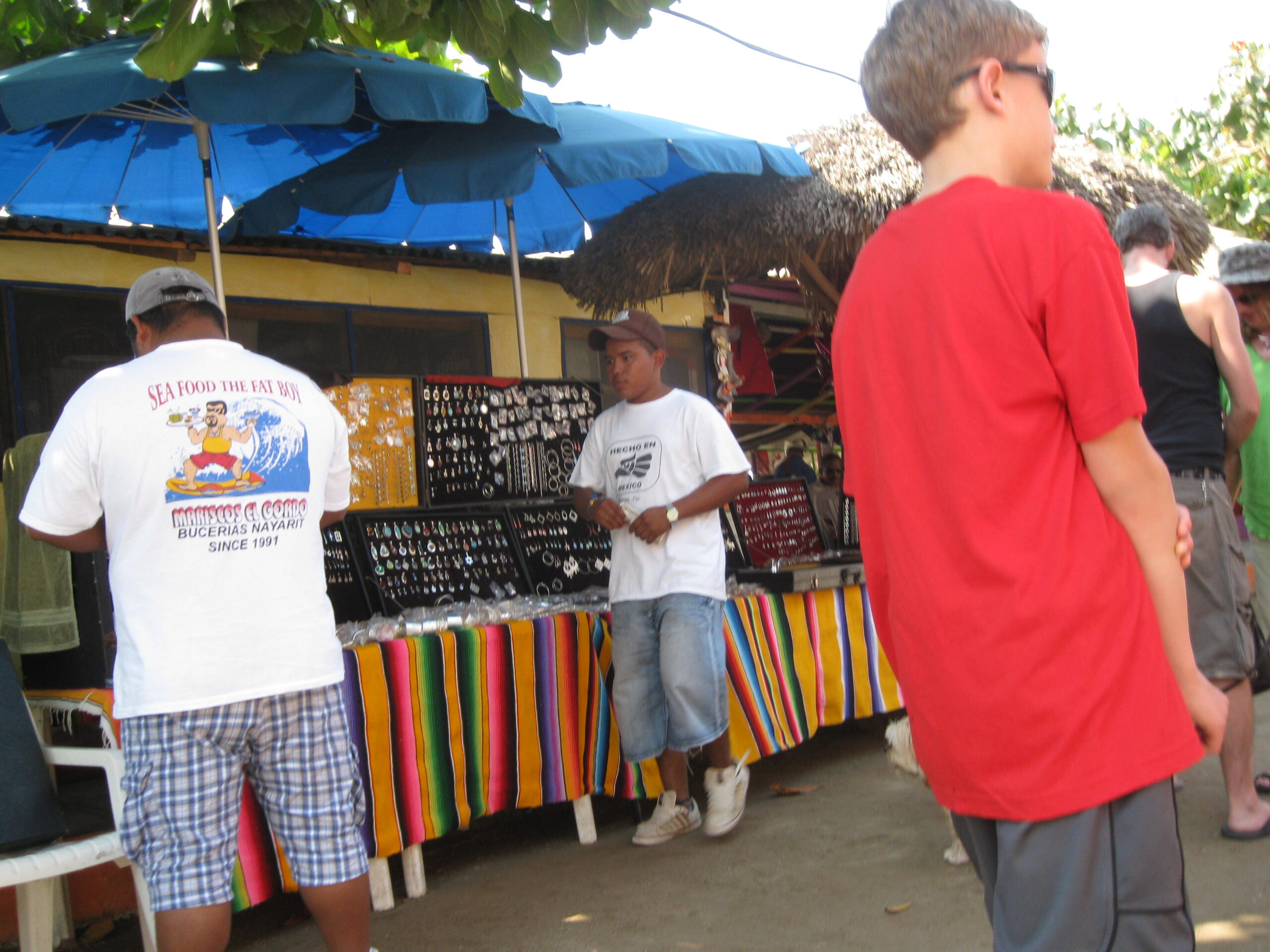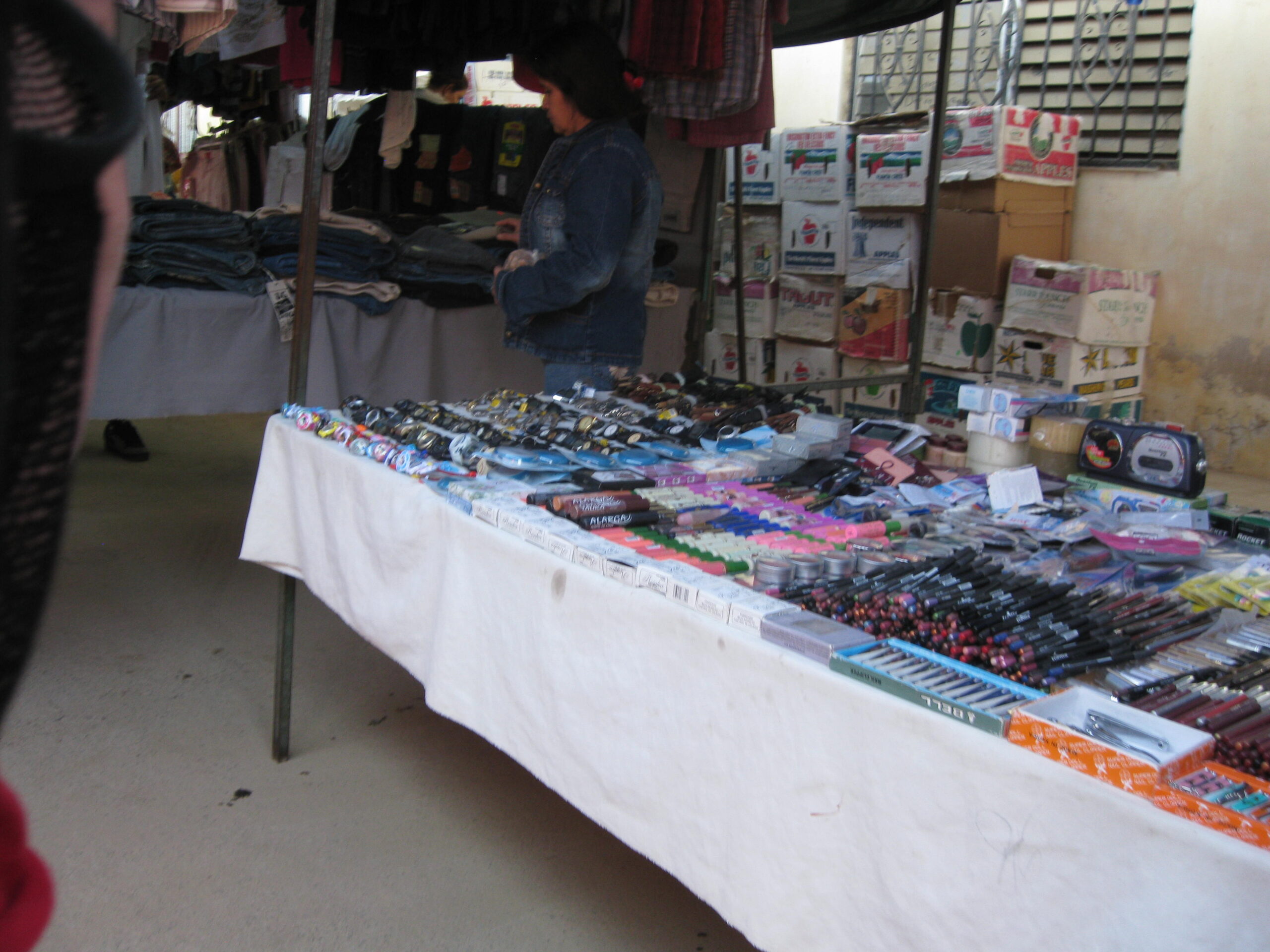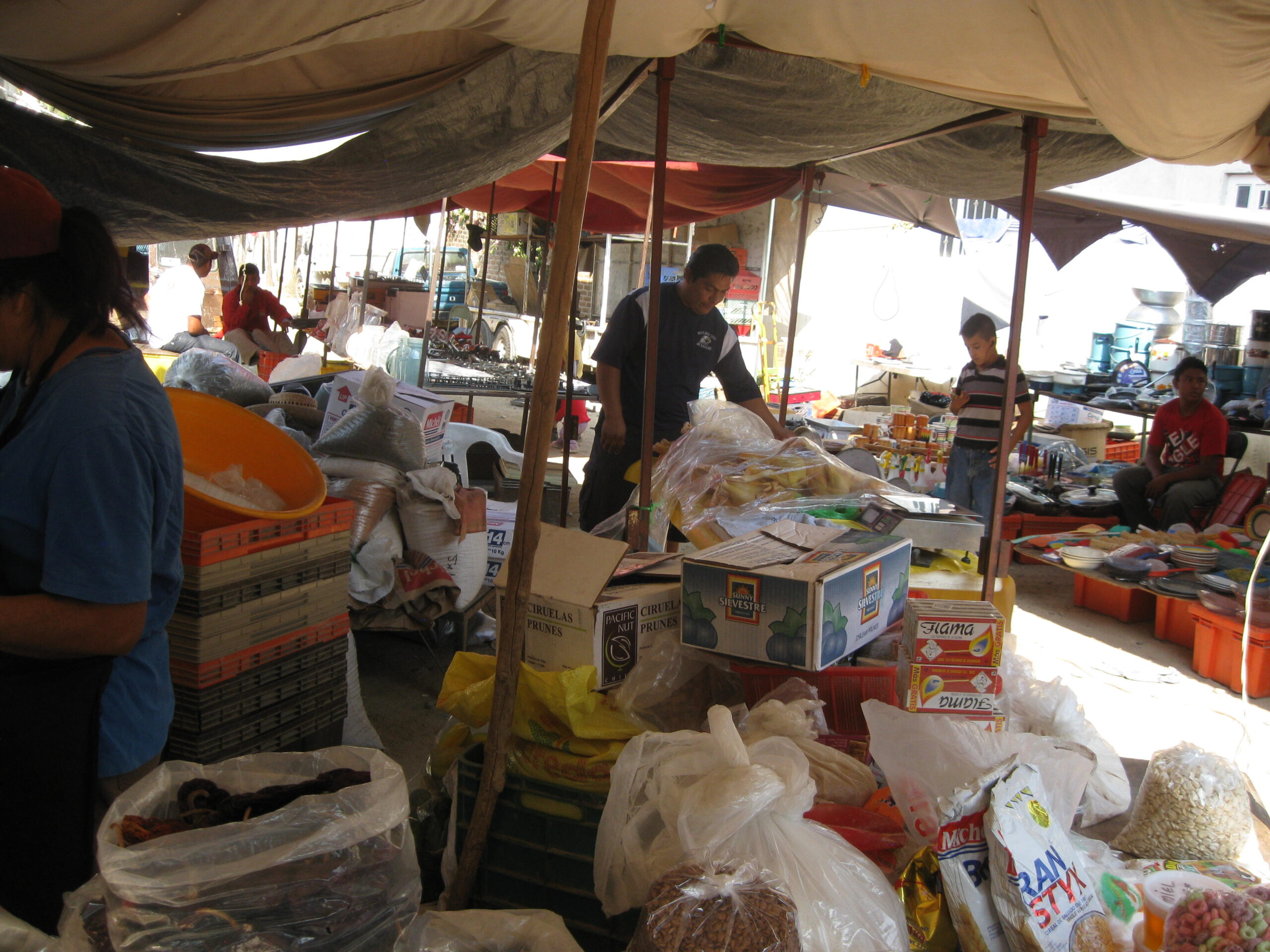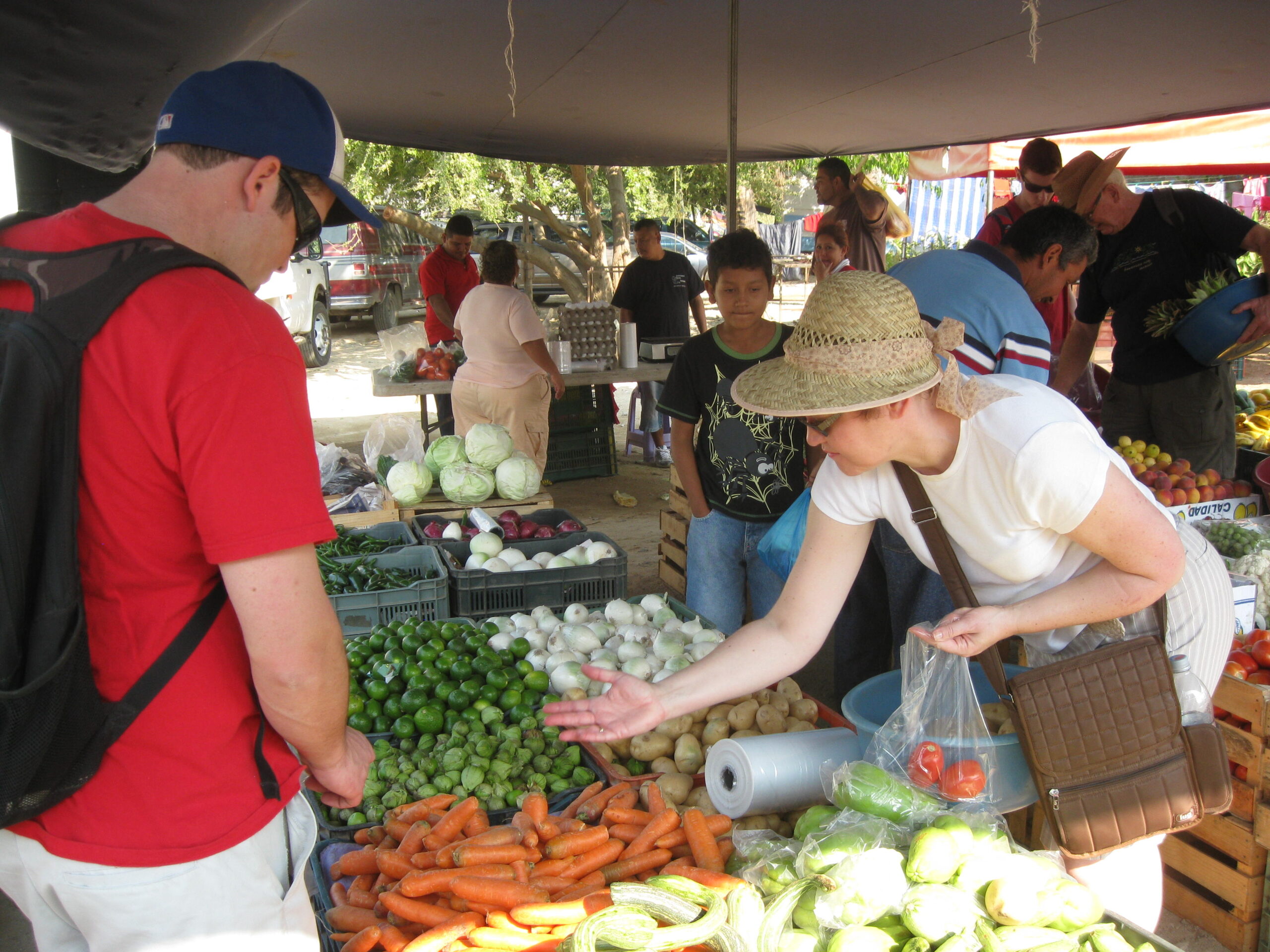 Yes, today was the day to go to the market, held each Sunday morning, on the other side of the highway. We got up, well, not early, but at least we got up (you know by now that I’m the sloth of the group), then made our way to the market. It was basically about six blocks of streets with vendors on both sides. The crowds apparently were small for a market Sunday, but that’s just as well for out-of-towner gringos like us!