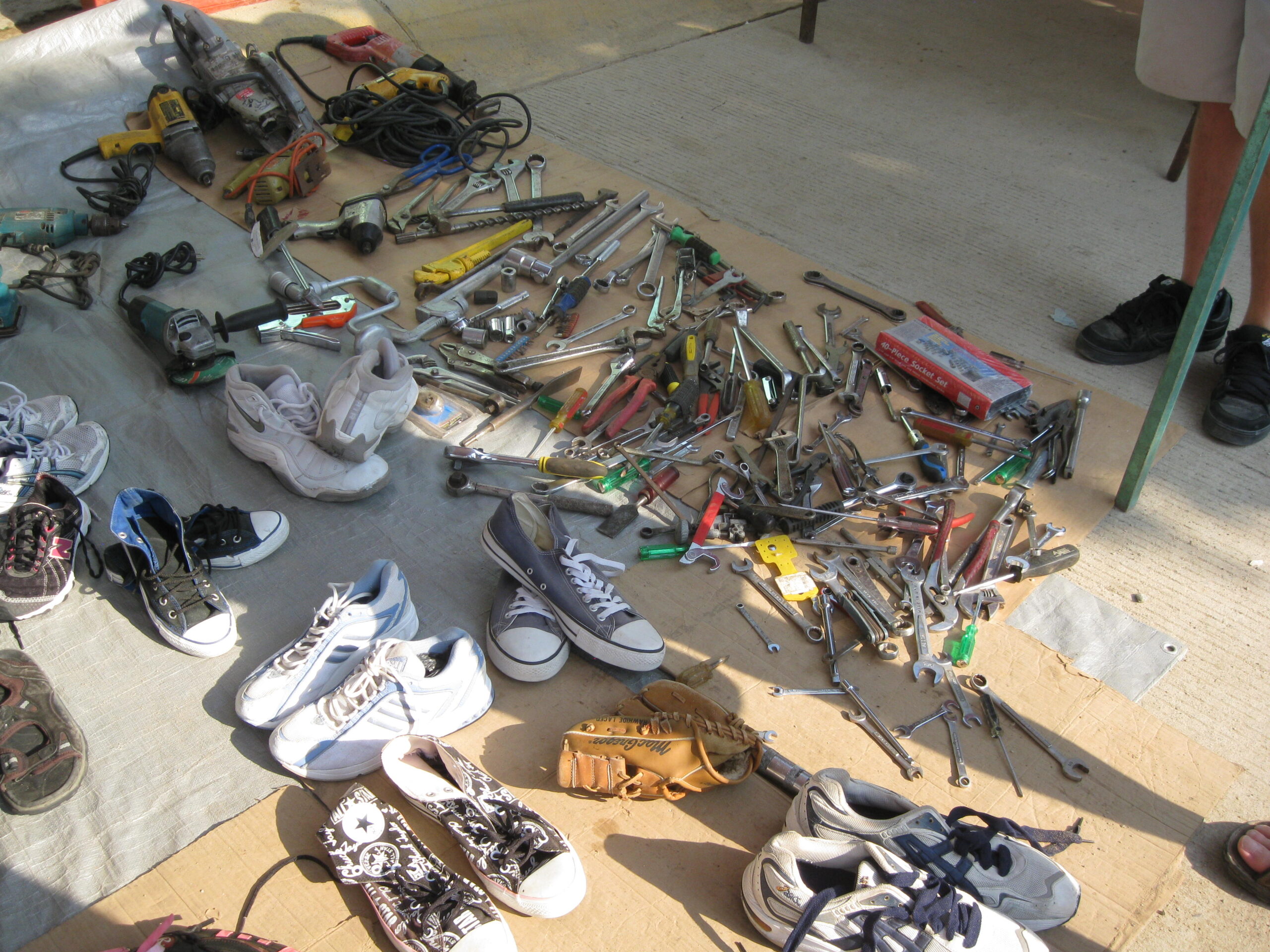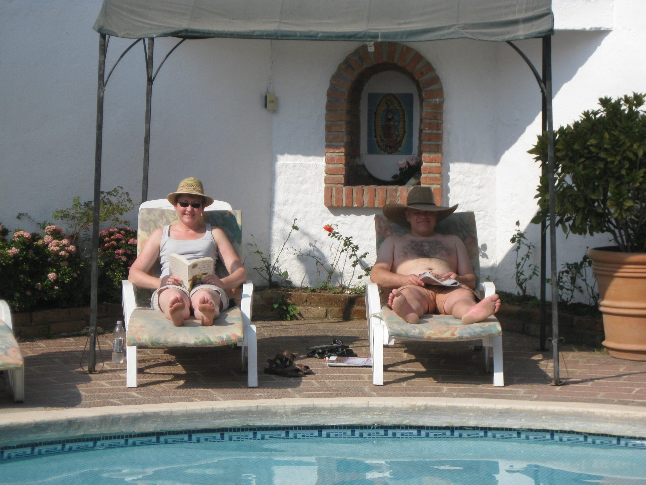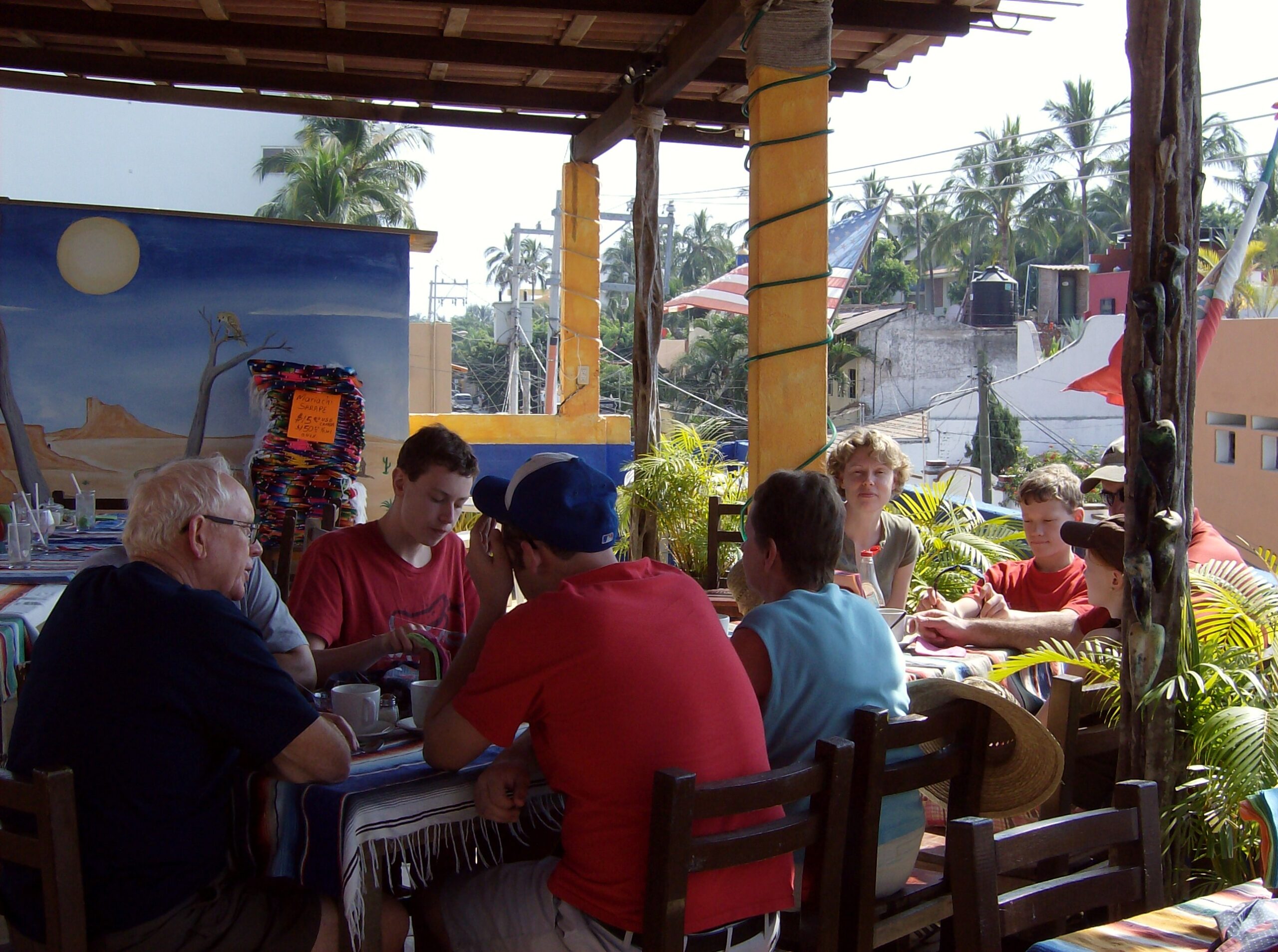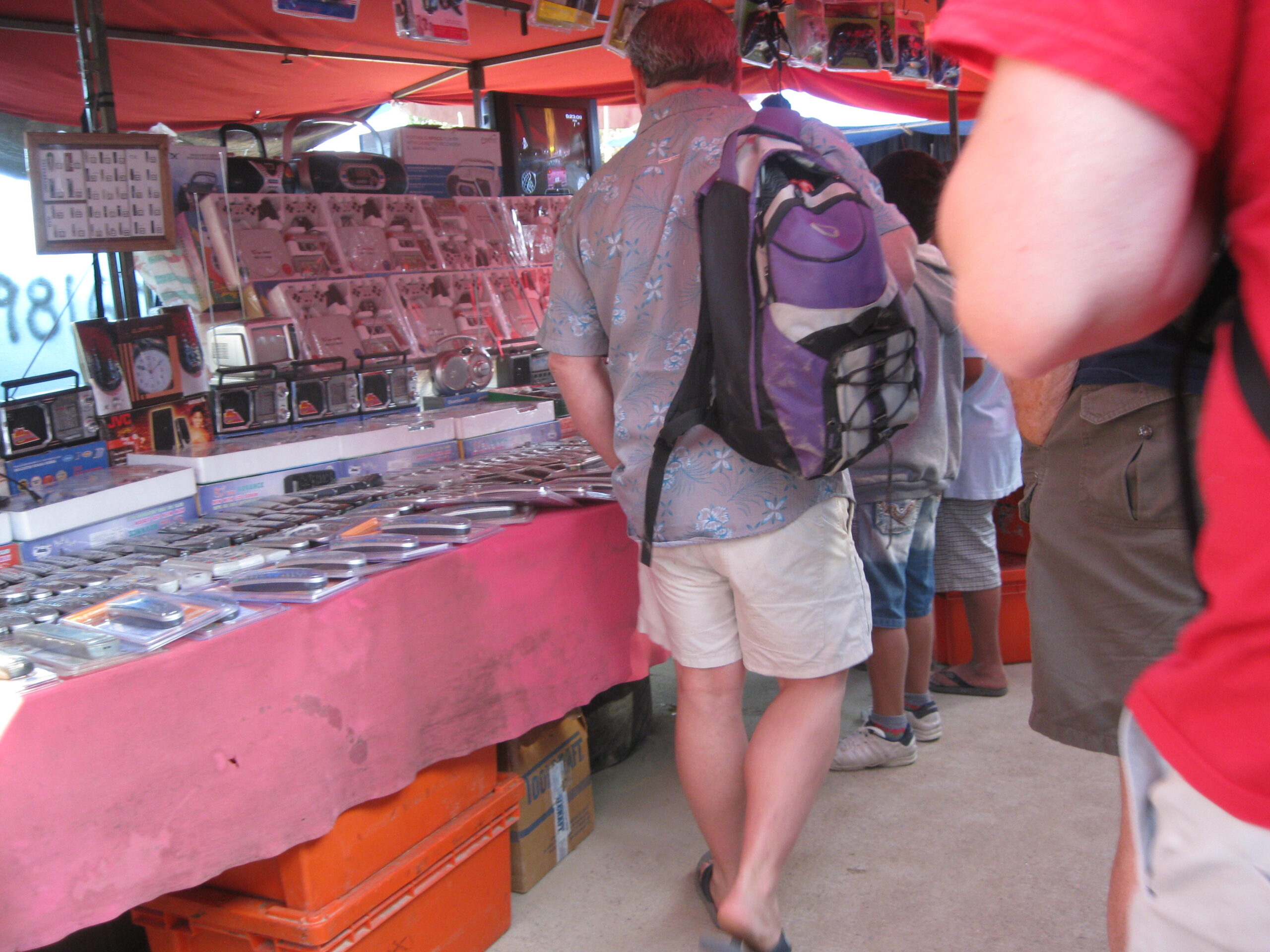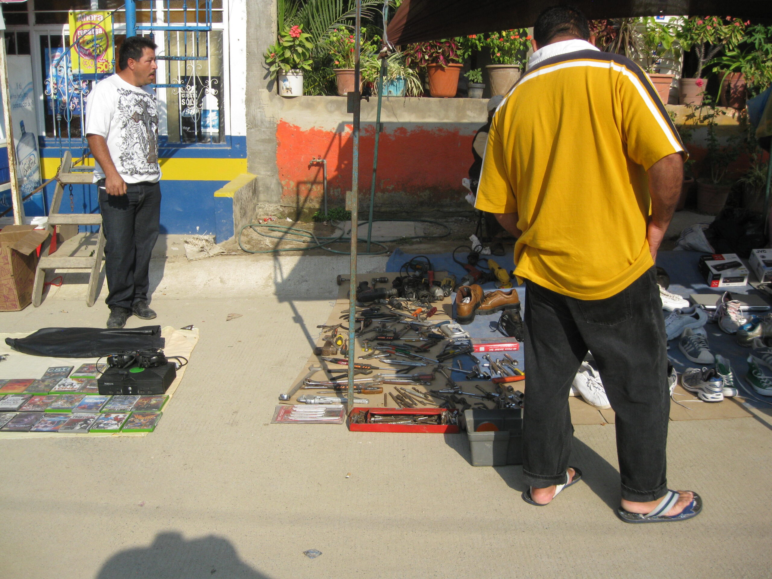 Yes, today was the day to go to the market, held each Sunday morning, on the other side of the highway. We got up, well, not early, but at least we got up (you know by now that I’m the sloth of the group), then made our way to the market. It was basically about six blocks of streets with vendors on both sides. The crowds apparently were small for a market Sunday, but that’s just as well for out-of-towner gringos like us!