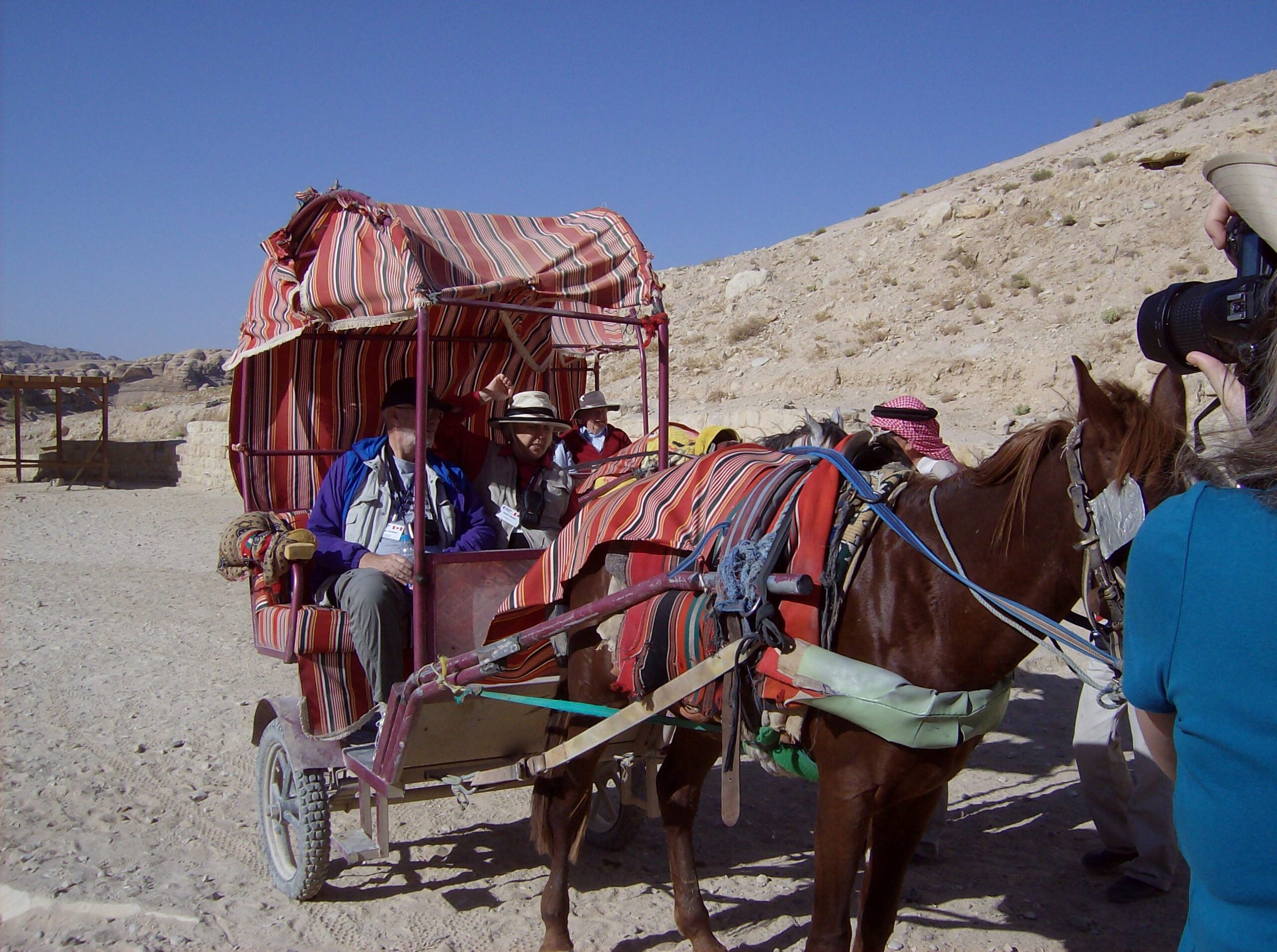 Last night, at the Amman Mariott (love that hotel!), someone called their room at 23h00 or so. Well, George thought it was the 06h30 wake up call, picked up the receiver, didn’t even listen, said “thanks” and hung up. He then got up, showered, and got dressed. Donna, wise to the game, finally looked at the clock and told him in no uncertain terms to get back into his pajamas and back to bed! So who knows who called them last night and why, but they sure got Donna excited!