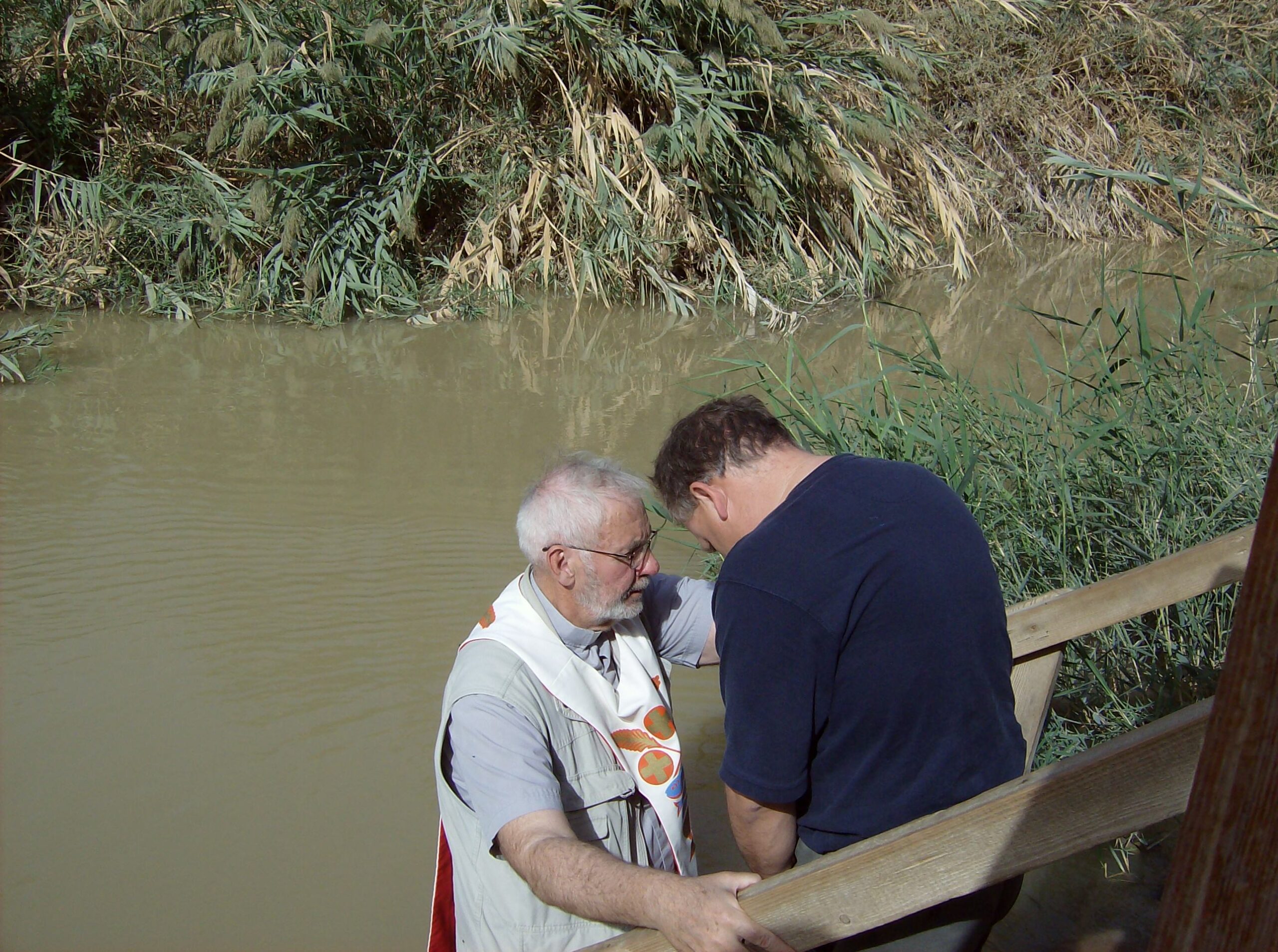 Dean gets re-baptized in by Col. (ret) Rev. George Davidson in the River Jordan.