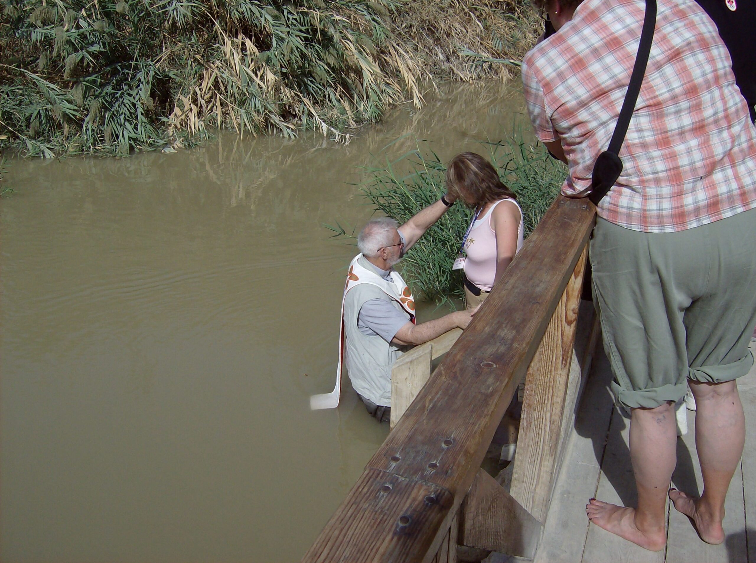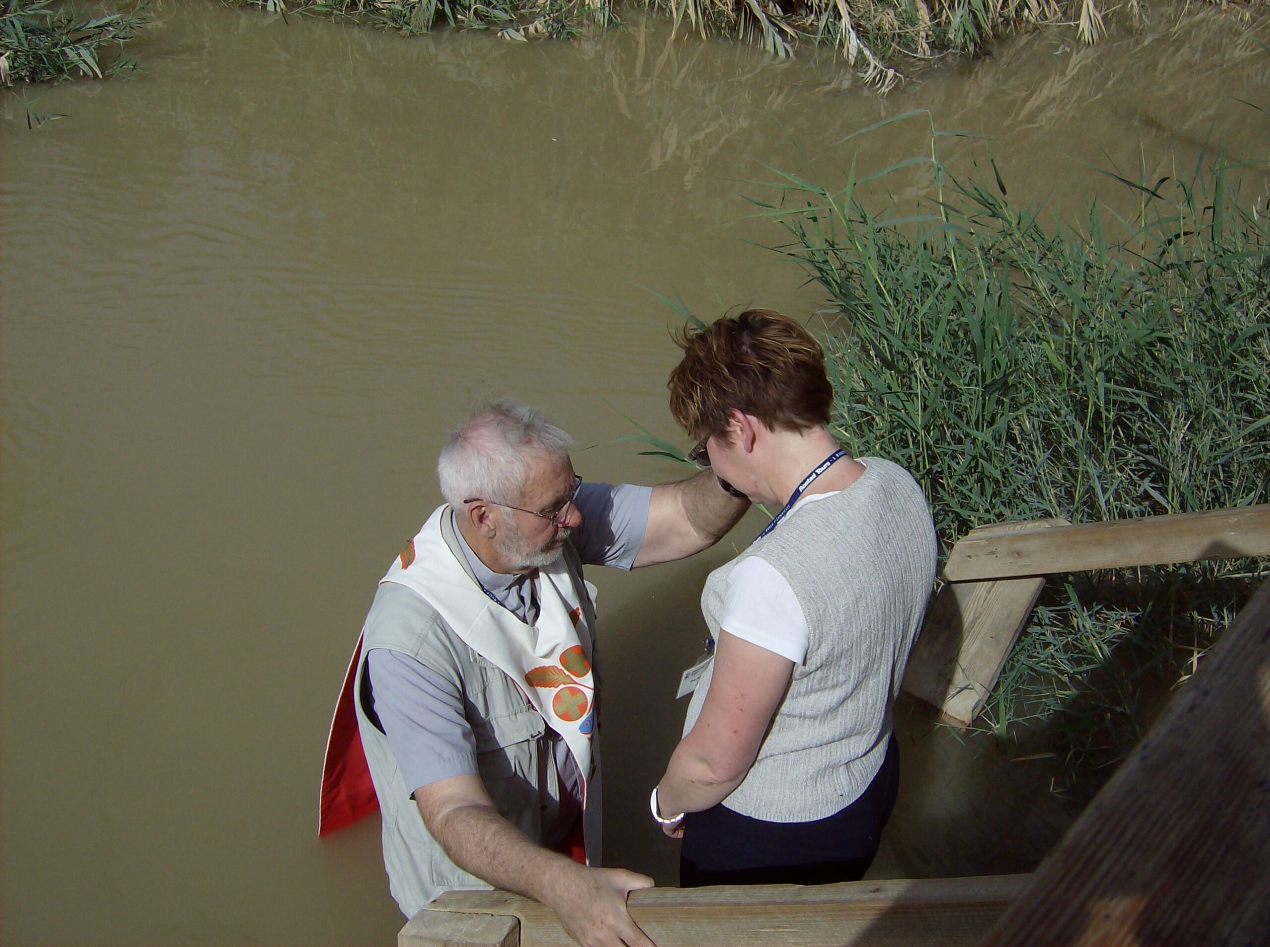 George re-baptizes his daughter Laurie in the River Jordan.