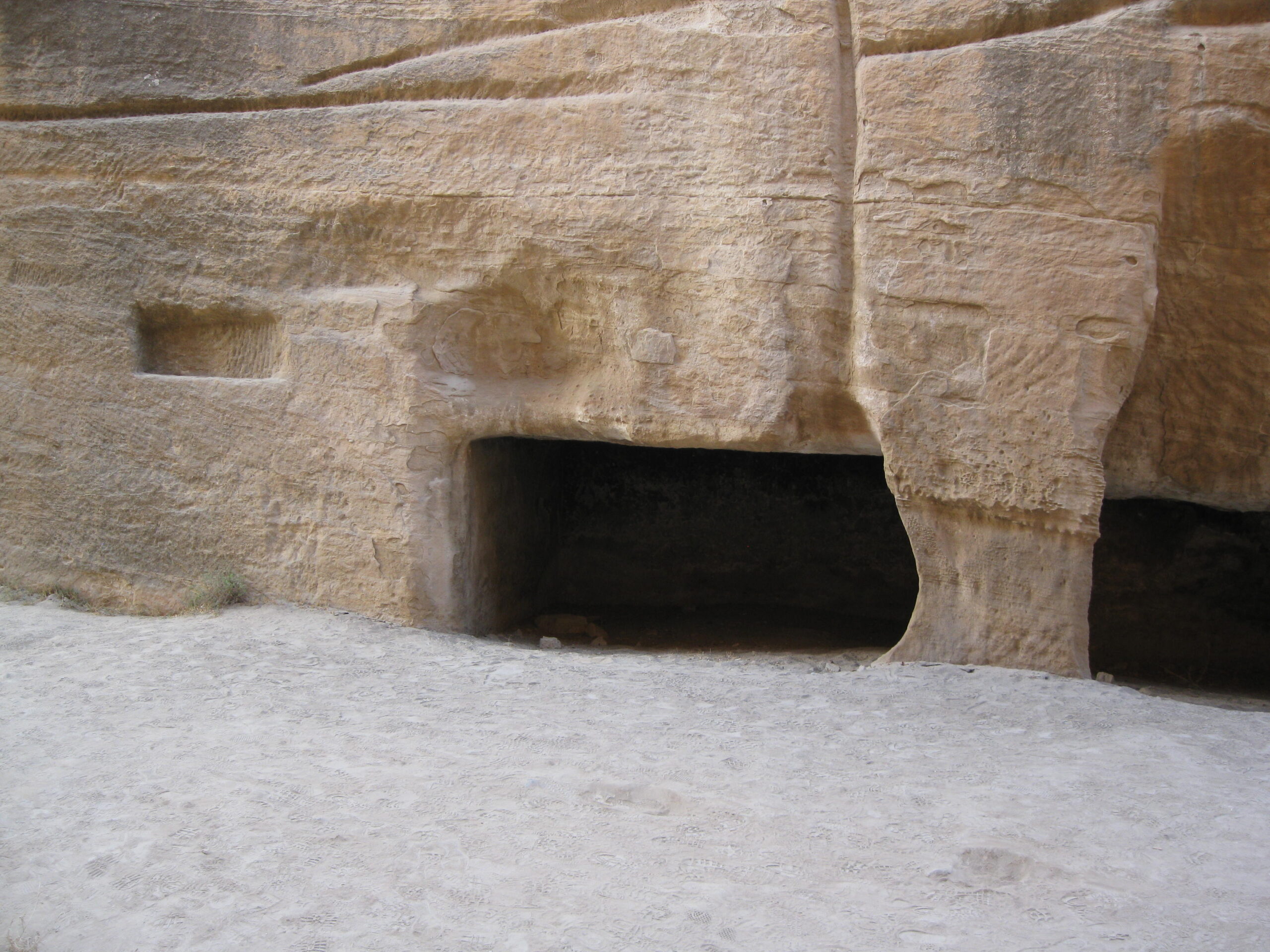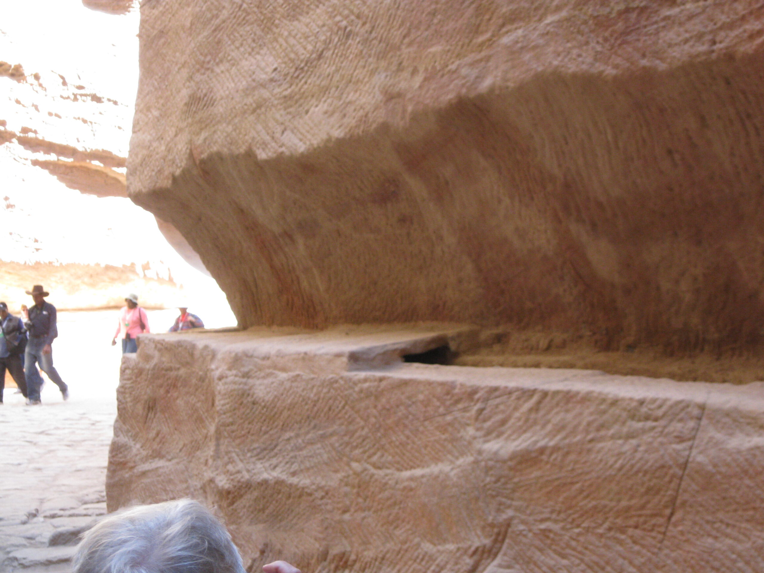 Petra had an amazing water distribution system hidden in the rock. When the erosion and damage occurred, it uncovered the secret. There was a clay lined trough hidden in the left side wall of the passage (clay lined to prevent seepage into the surrounding relatively porous rock), carefully covered with fitted rock pieces to make it look inconspicuous. This water supply was extended right back to a deep well a short distance away. Enemies didn’t know the source, couldn’t interrupt or poison it, so the city could live for a long time, even under siege.
