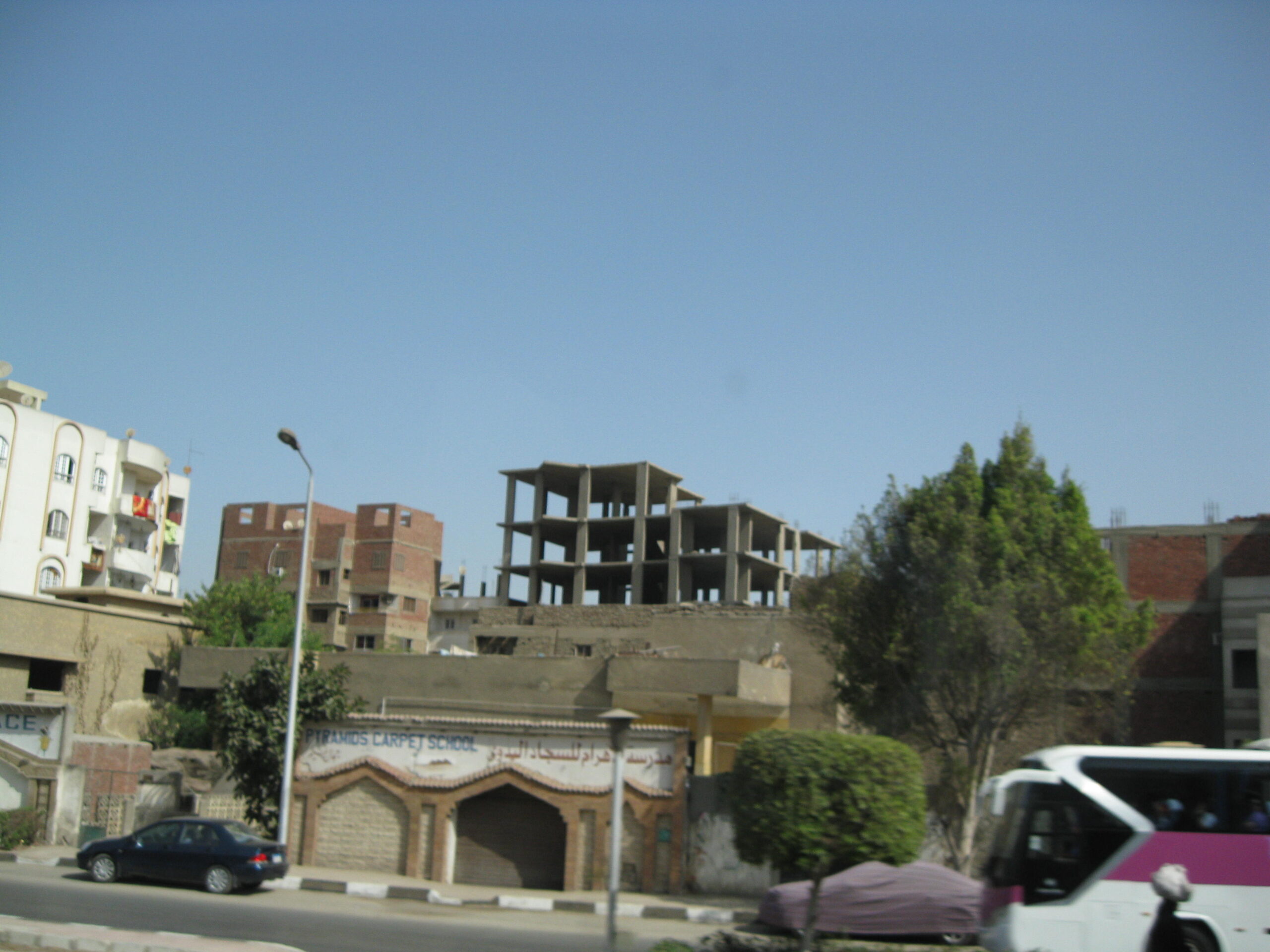One of the things that strikes you about the city of Cairo (and Giza) is that the buildings look terrible. Very few of the residence buildings are completed. Our guide advised that this is a way to avoid taxes, as apparently incomplete buildings are taxed much lower. It sure makes the residences look ugly, especially at night, when you can see that they don’t have windows but people are still living there. You can see carpets & towels over windows, even see right into people’s living areas, and it can look rather sad.
