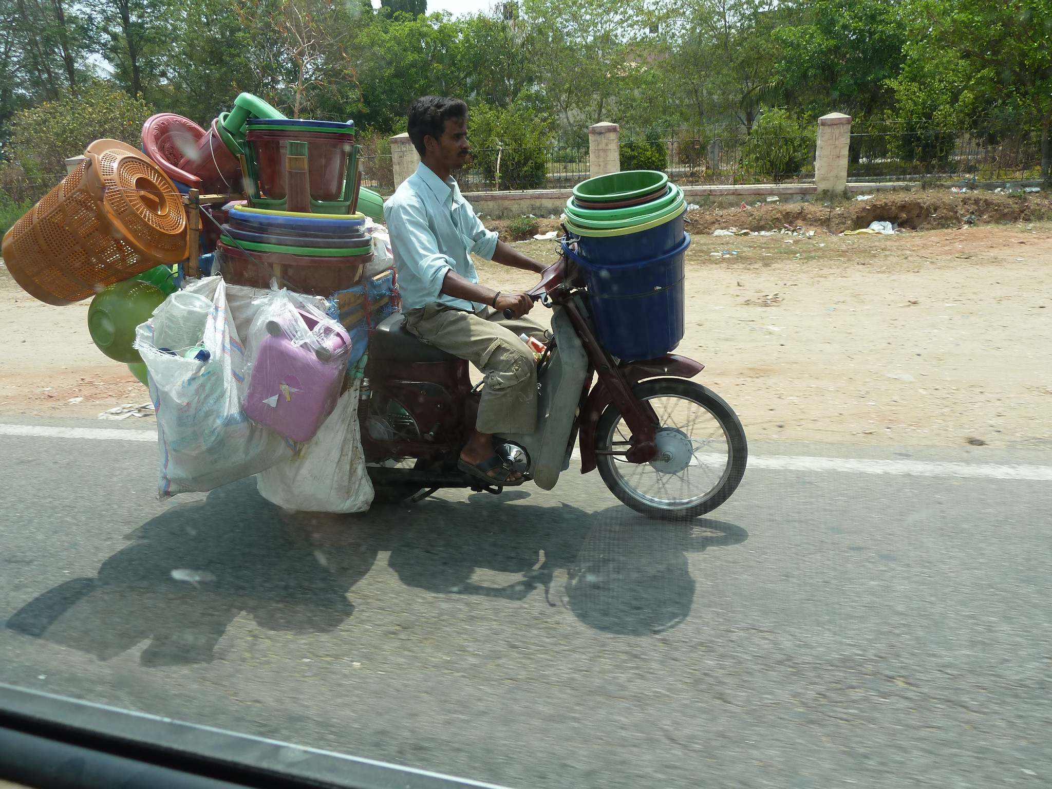 On the ride back, I was again amazed at all the different vehicles on the road, including a family of four on a motorbike – dad driving, daughter sitting in front of him carrying something, son behind him, wife sitting side-saddle on the back. All quite relaxed, zipping down a busy highway at 80 km/hr or so. Wow.