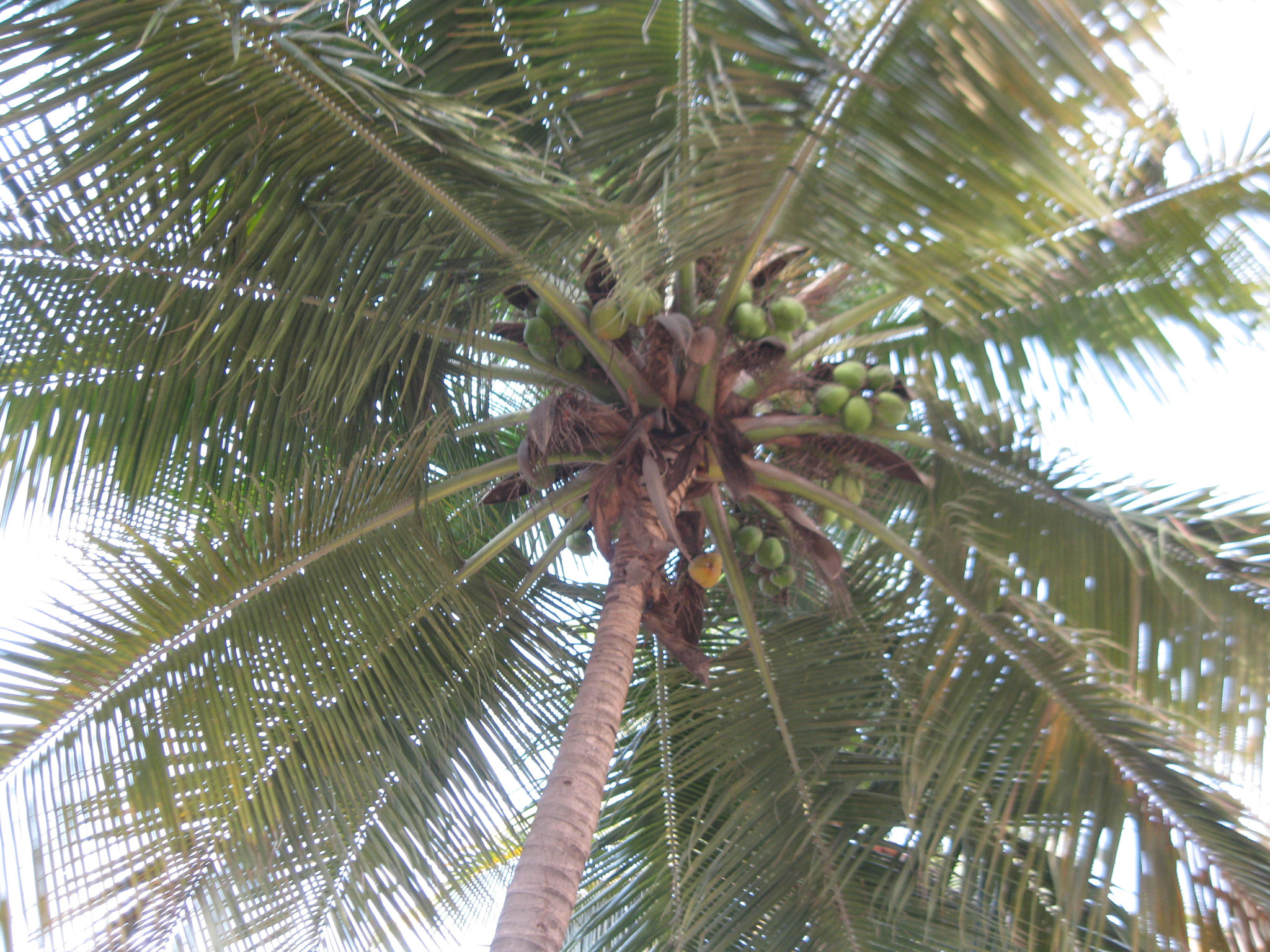 We chatted about coconuts. I looked up, ugh, look at them up there, if one dropped on my it would wipe me out! No worry, said Mani, even when ripe you have to go up and tug on them to get them down.