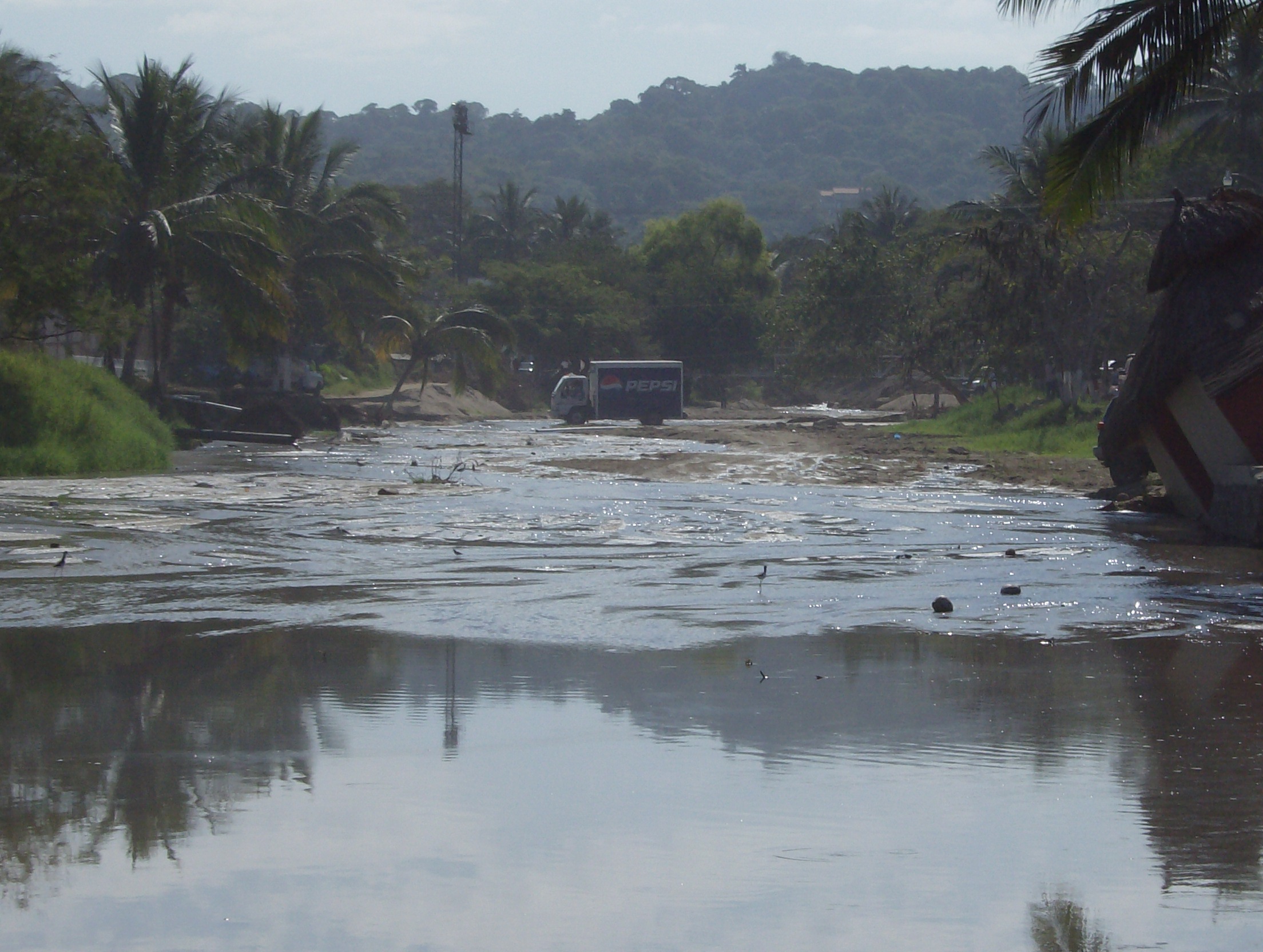 We arrived in Sayulita, and all the Mexican folk on the bus got off. The driver looked a little perplexed, then we realized that the bridge ahead over the river was out – we weren’t going to get to the other side unless the bus started to fly! There were about a dozen other gringos remaining on the bus too, and we had a good chuckle as we got out.