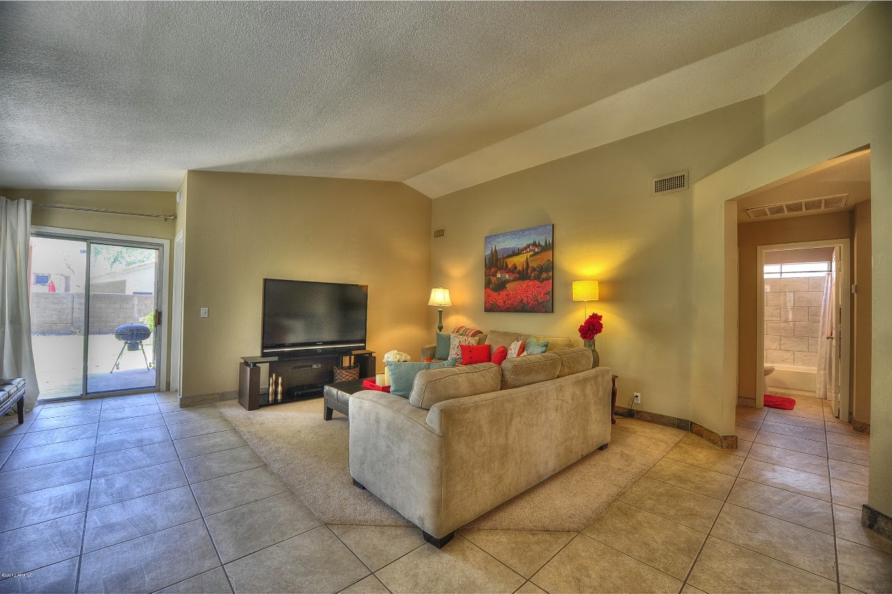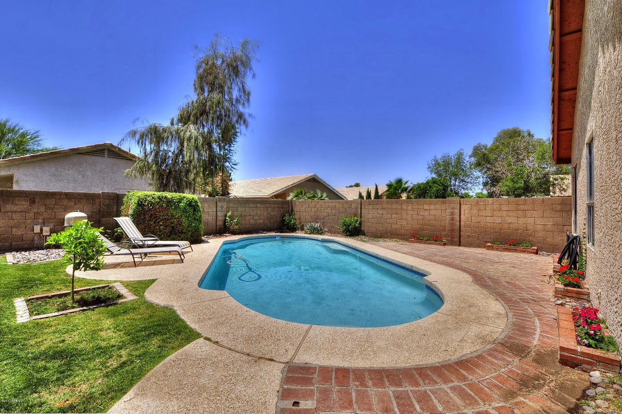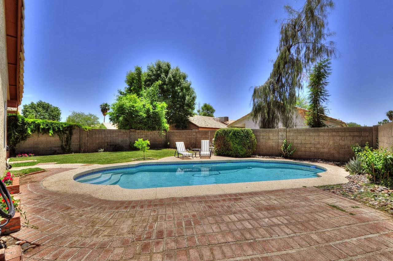 Yup, a two car garage and a pool! Here are the pre-purchase pictures of the place. It doesn’t look quite as good now – the flowers along the sides of the house had to be removed to treat for TERMITES (turns out there are two kinds of houses here – those that have ’em and those that will have ’em). Plus of course, now my sparse furniture is in here… Well, I bought some of what was here, so new pictures might show some familiar scenes.