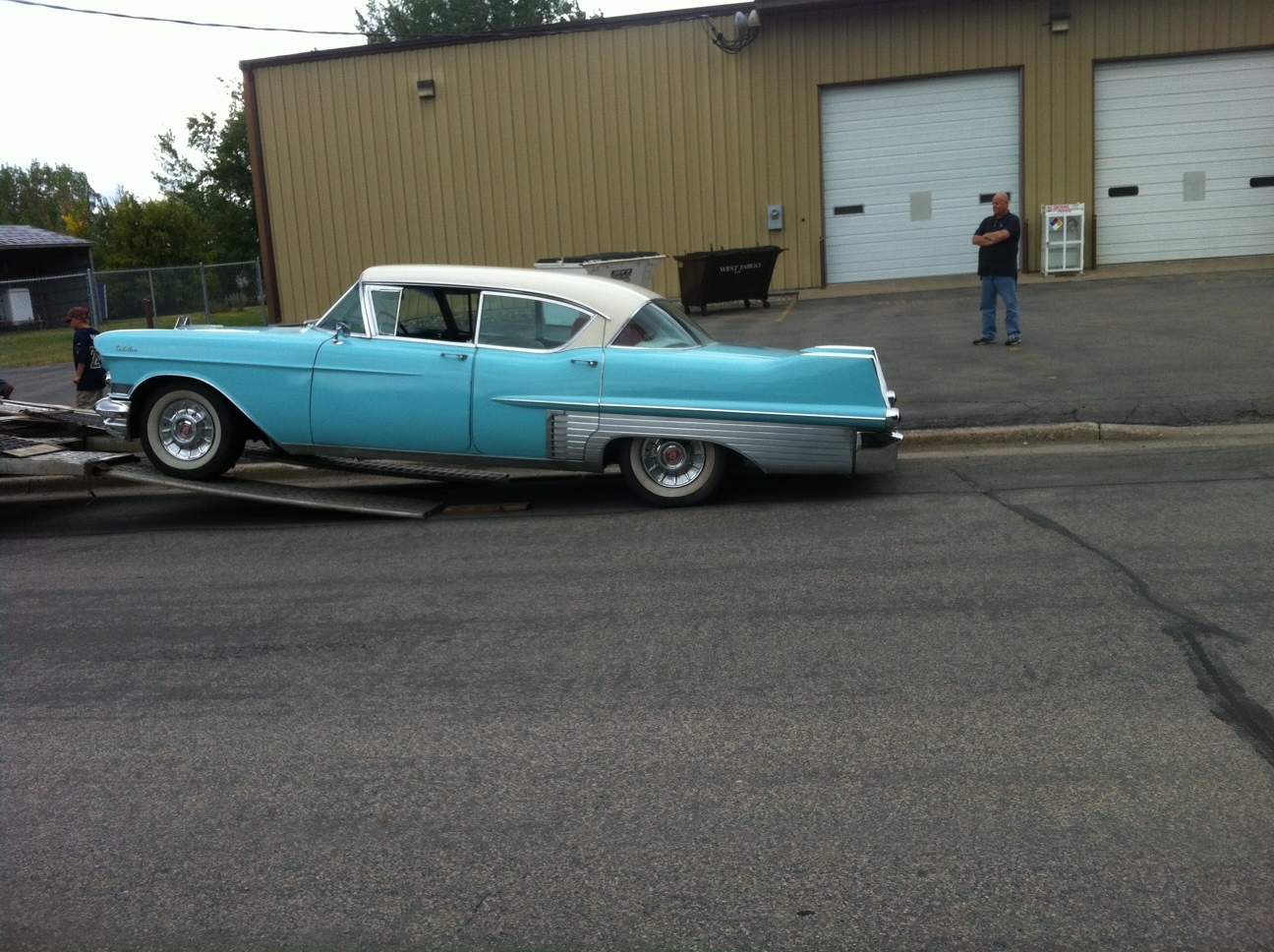 The truck driver had to unload two other vehicles first, then roll her down off the carrier. He insisted on using her own brakes, whereas I wanted to use the winch; it worked out great because without the winch, the suspension was “up” and the rear cleared the ground better.